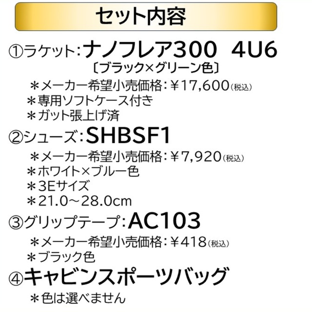 ラケット+シューズ+グリップテープ